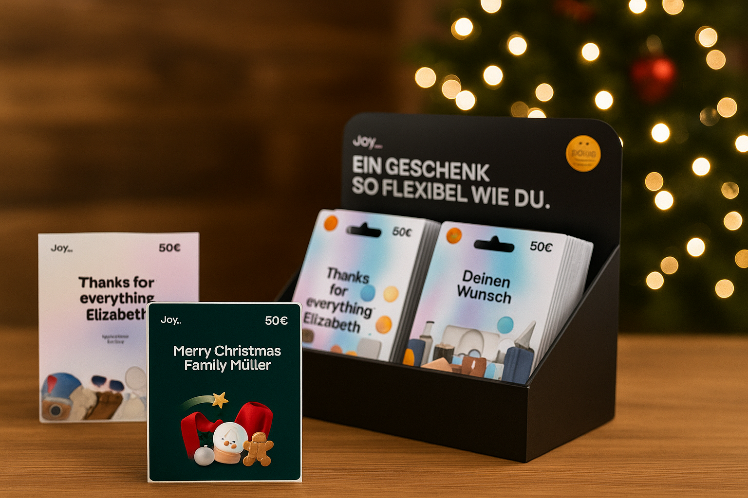 Über 50 % des Umsatzes mit Geschenkkarten werden in den zwei Wochen vor Weihnachten erzielt. Laut einer aktuellen EY-Studie (November 2025) nennen 48 % der Befragten Gutscheine oder Bargeld als bevorzugtes Geschenk – ein klarer Hinweis, dass wertbasierte Geschenke weiterhin besonders gefragt sind.¹ Kein Wunder: Sie sind flexibel, persönlich und sofort verfügbar.
