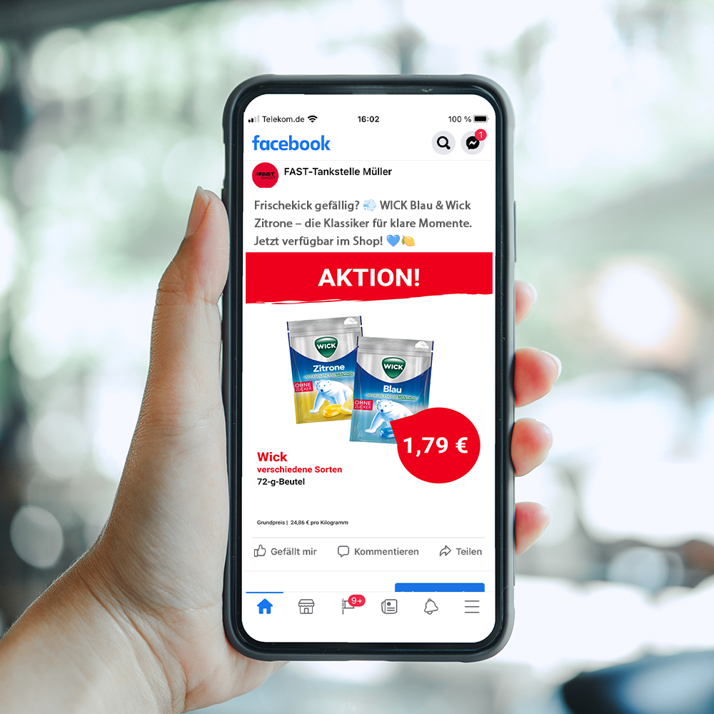 Die Werbevorlagen können Sie beispielsweises auf Ihren Social-Media-Kanälen, Digital Signage Bildschirmen oder Ihrem Kassenbildschirm einsetzen. Tankstellenbetreiber können so die Warengruppe spürbar beleben, Zusatzkäufe generieren und das vorhandene Umsatzpotenzial der Hustenbonbons bestmöglich ausschöpfen.