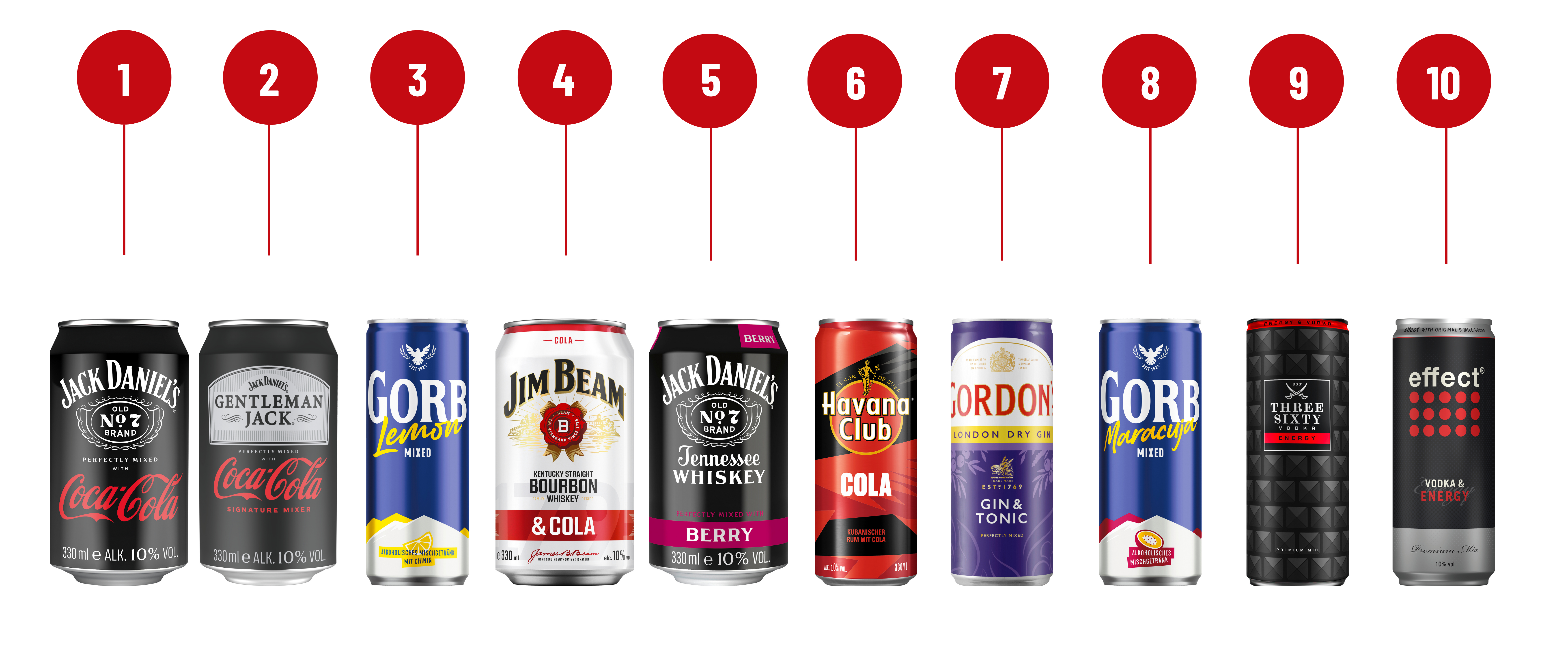 Das Sortiment zeigt sich dynamisch. Während Klassiker wie Whisky-Cola oder Gin Tonic weiterhin hoch im Kurs stehen, gewinnen fruchtig-spritzige Varianten wie Mango, Peach oder Pink Grapefruit zunehmend an Bedeutung. Aperitif-inspirierte Geschmacksrichtungen à la Spritz oder Hugo runden das Angebot ab. Parallel dazu kommen vermehrt kleinere Glasflaschen in den Markt, die insbesondere leichte Aperitifs attraktiv inszenieren.