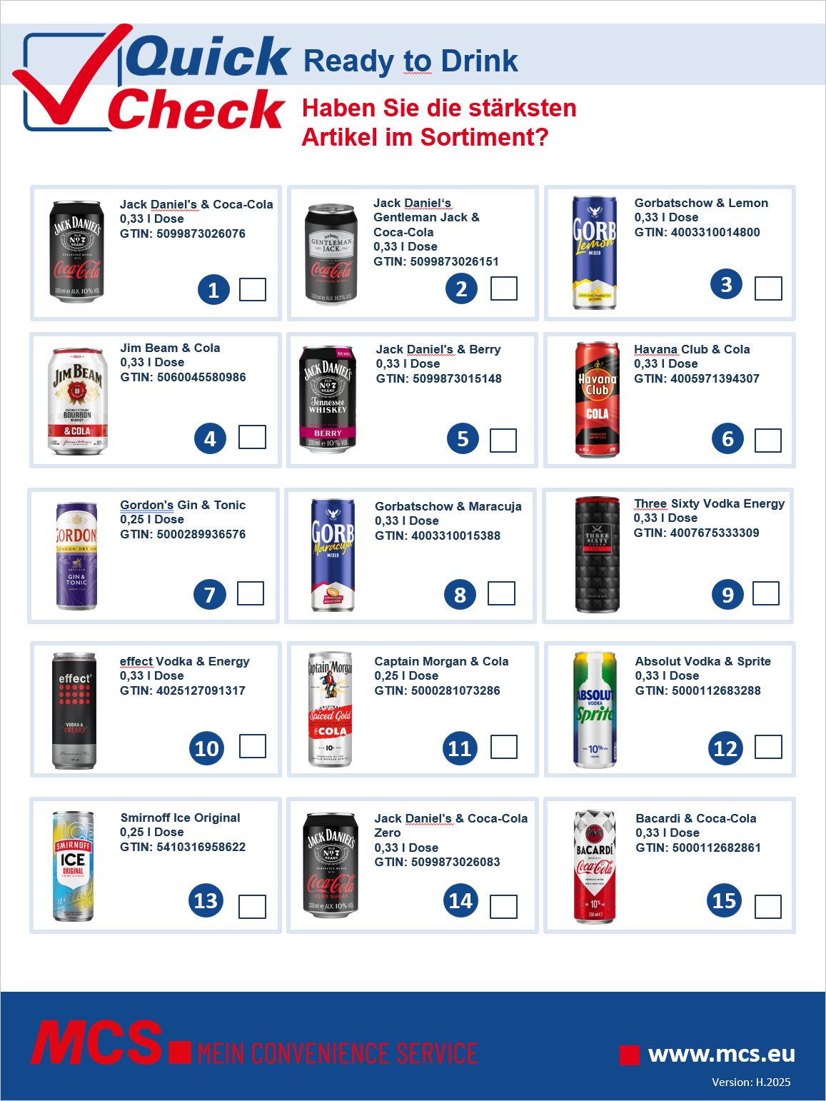 Einen Überblick über die wichtigsten Artikel zu erhalten, haben wir für Sie den Quick-Check ready-to-drink erstellt.