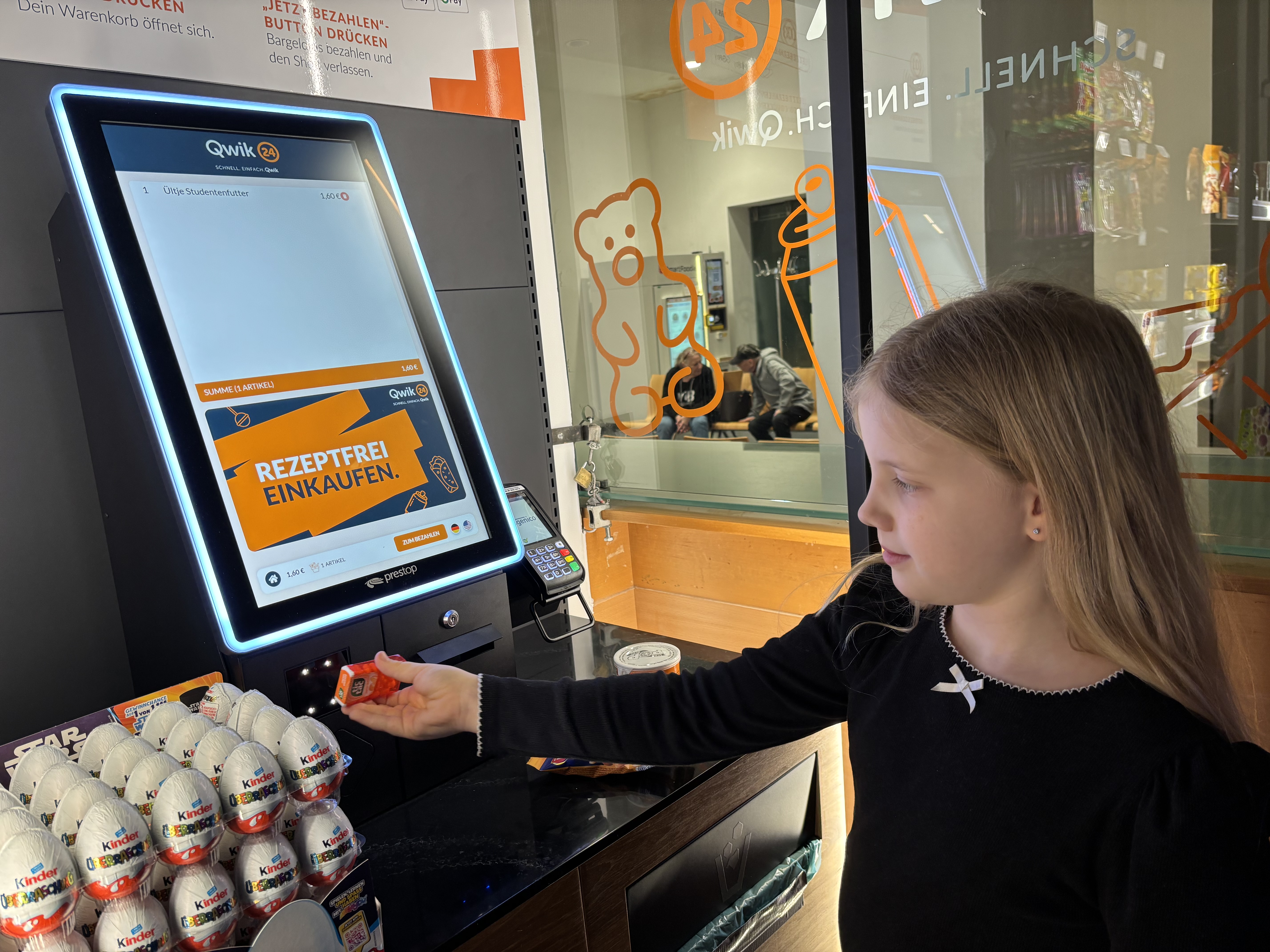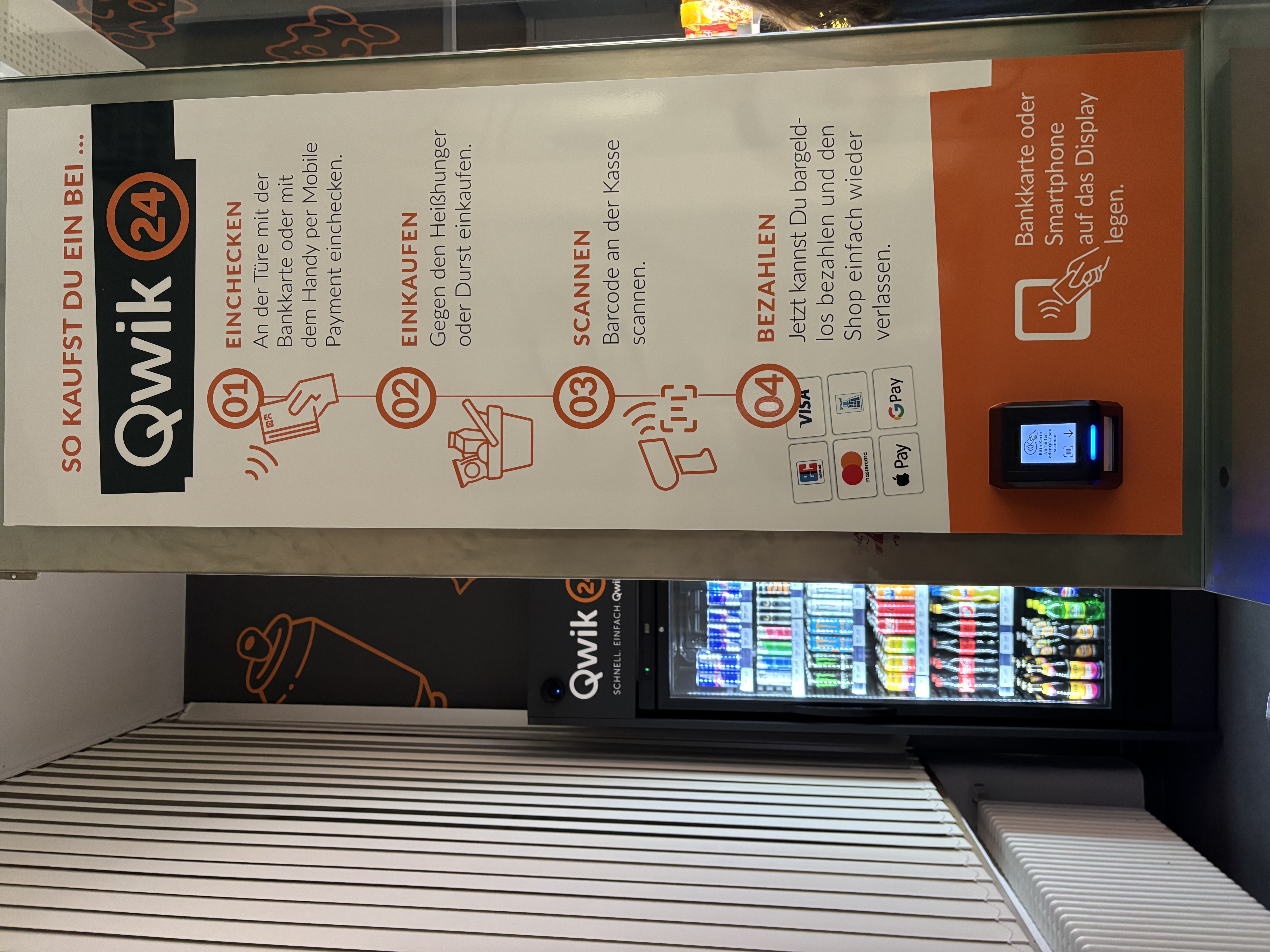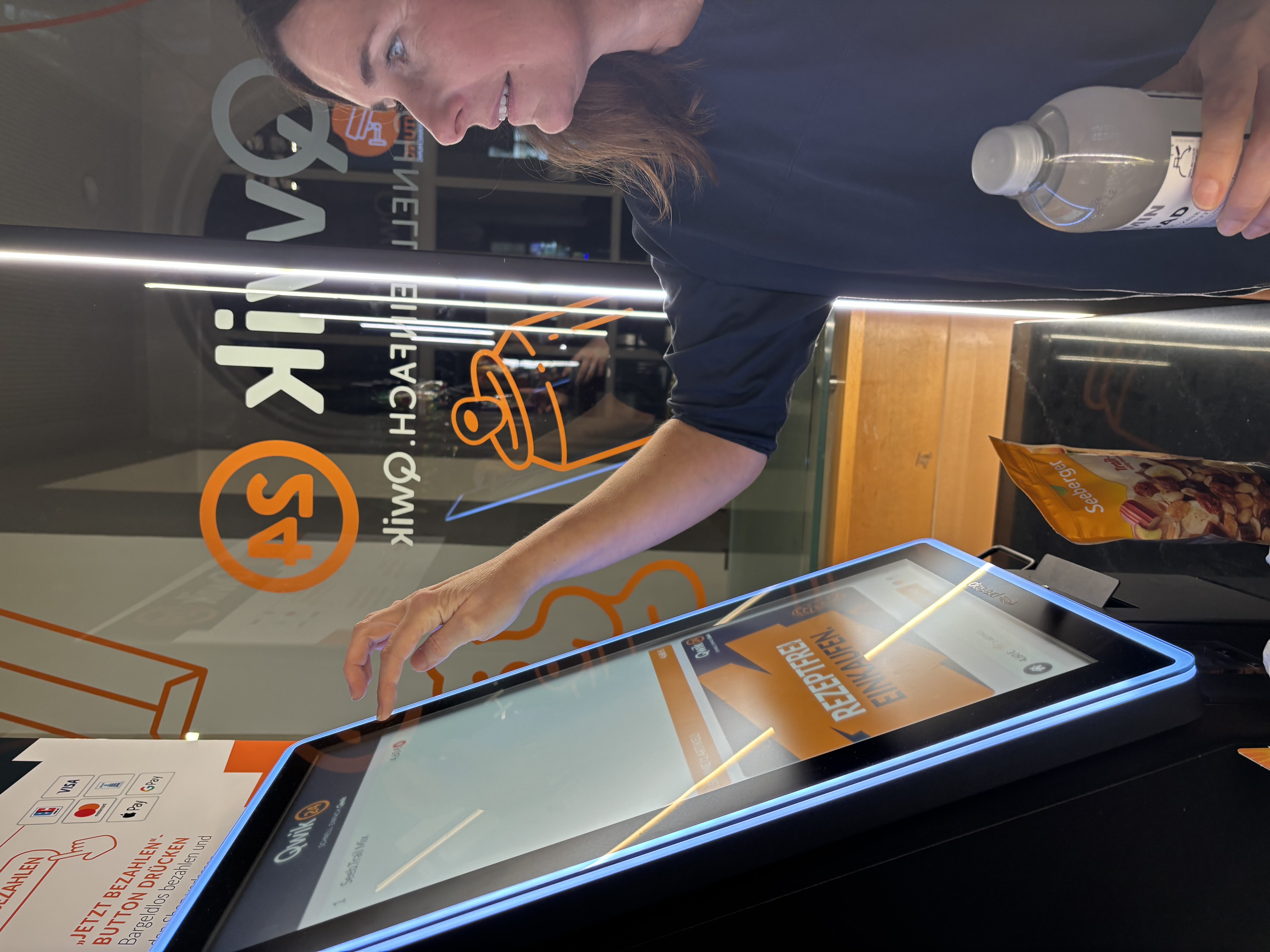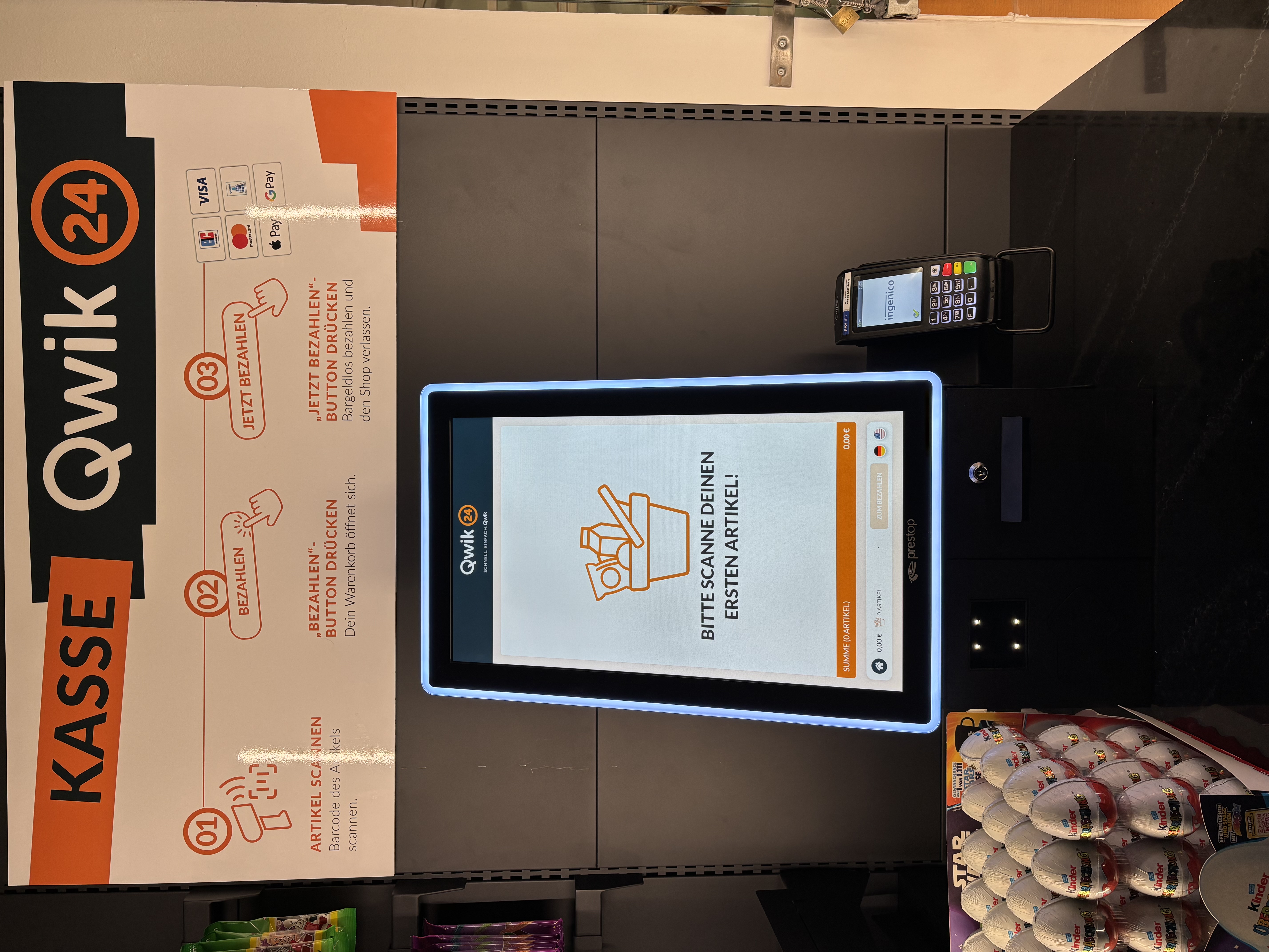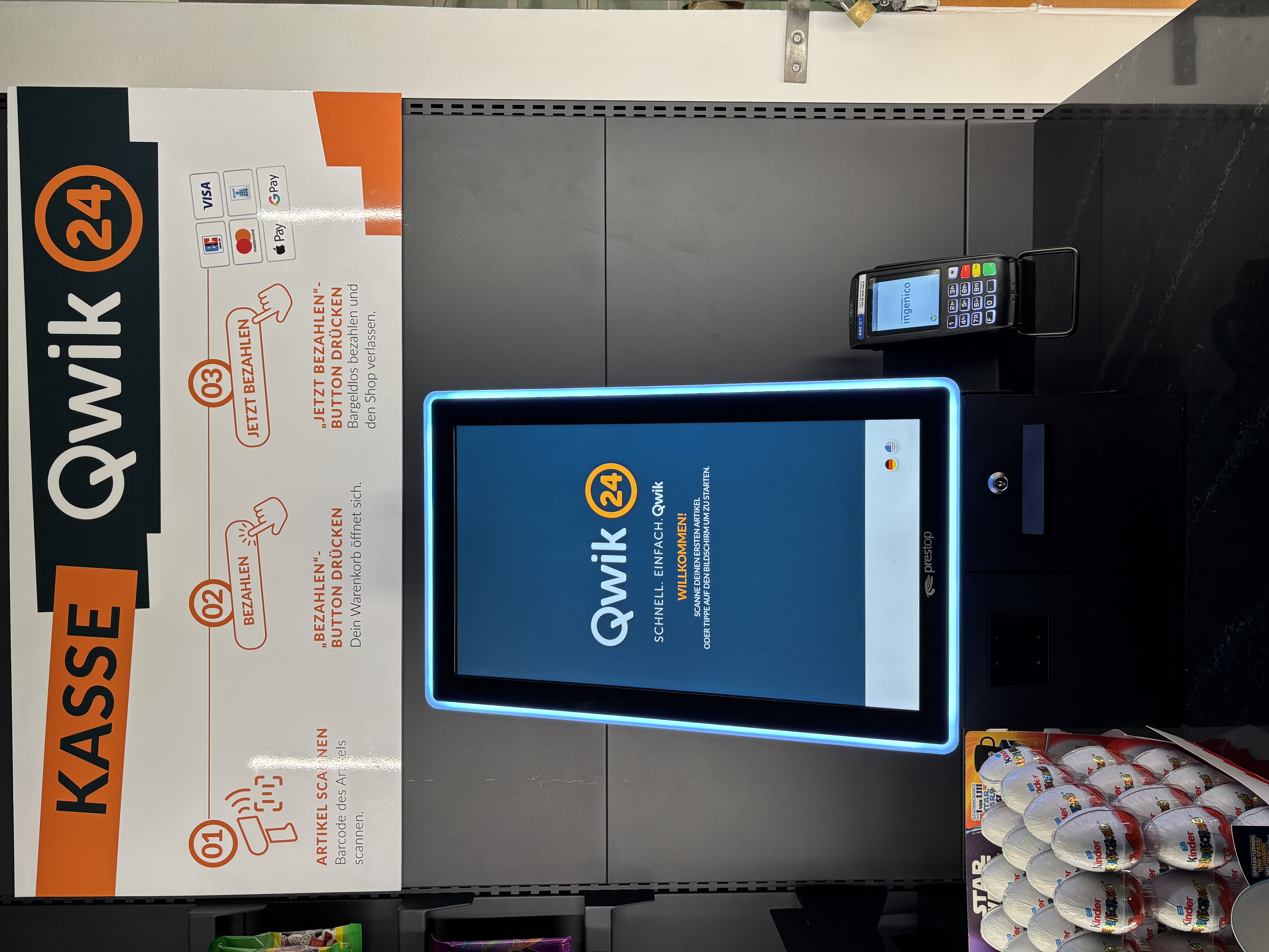 Der Qwik24 Smart Store bietet ein bedarfsgerechtes Convenience-Sortiment mit Snacks, Getränken und Artikeln des täglichen Bedarfs - abgestimmt auf die besonderen Anforderungen eines Krankenhausumfelds. Bezahlt wird bequem über einen SCO (Self-Checkout). Das Kassensystem sowie die integrierten Werbedisplays stammen vom Technologiepartner Shop-IQ und sorgen für einen reibungslosen Checkout sowie eine digitale Kundenansprache direkt am Point of Sale.
