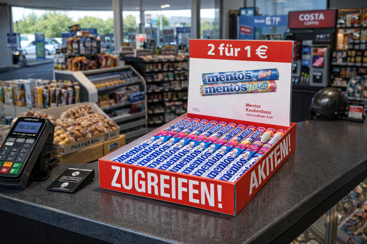 Die CashBox ist ein innovatives Verkaufsförderungs-Tool für Getränkedosen mit praktischer Doppelfunktion, denn sie ist Zahlteller und Mini-Aktionsfläche in einem. Dadurch ermöglicht sie höchste Flächenproduktivität. Die attraktiven Angebote animieren Ihre Kunden zum Spontankauf und das direkt beim Bezahlvorgang! Die Aktionen wechseln im vierwöchigen Rhythmus und sorgen damit für Abwechslung und Dynamik im Aktionswesen. Nutzen Sie dazu immer das umfangreiche Werbeangebot, das Ihnen passend zur jeweiligen CashBox Aktion zur Verfügung steht. Die entsprechenden Werbemittel werden Ihnen für jede Aktion rechtzeitig per Post zugesandt.