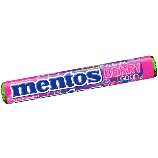 Mit Mentos Feeling Berry Good bringt Mentos eine fruchtige Limited Edition ins Regal, die besonders auf die Vorlieben jüngerer Konsumenten zugeschnitten ist. Die chewy Dragées kombinieren die typisch weiche Mentos-Konsistenz mit einer intensiven Beerenmischung aus Kirsch-, Blaubeer- und Himbeergeschmack und sorgen so für ein abwechslungsreiches und fruchtiges Geschmackserlebnis.