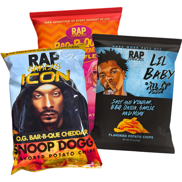 Rap Snacks Chips bringen frischen Wind ins Snackregal – mit auffälligem Design, ausgefallenen Sorten und prominenter Unterstützung aus der US-Rap-Szene. Die trendigen Chips sprechen vor allem eine jüngere, lifestyleaffine Zielgruppe an, die Wert auf Individualität und Geschmackserlebnis legt. Jede Sorte kombiniert mehrere Aromen zu einem komplexen Geschmacksprofil und wird durch das Gesicht eines bekannten Rappers oder einer Rapperin auf der Verpackung unterstützt.